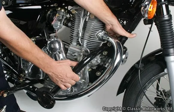 Note: For Electra models, the metal wire-retaining strap may need to be removed to allow the clamp to fit properly. On some Royal Enfield models you may have to cut off the horn attachment lug and relocate the horn.