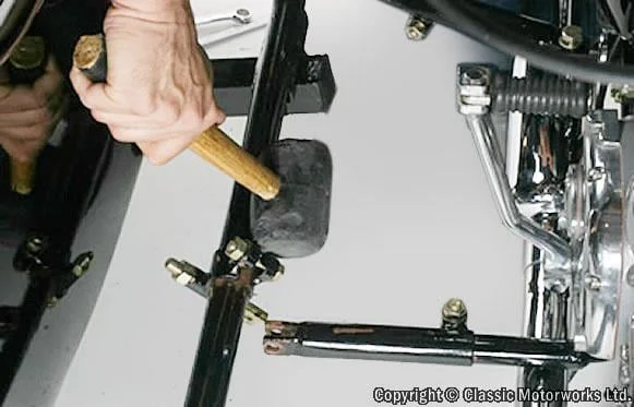 You may have to move the clamp on the sidecar fore and aft for proper alignment to this attachment. A light tapping with a rubber mallet may need to be used for positioning.